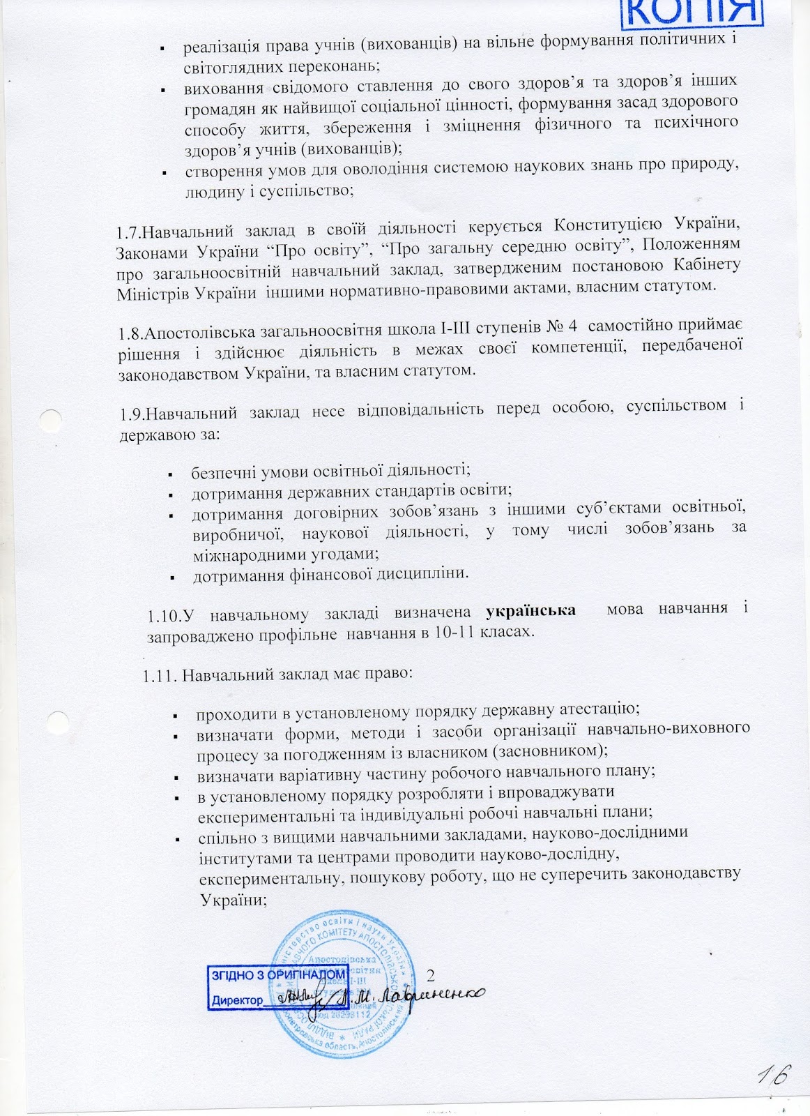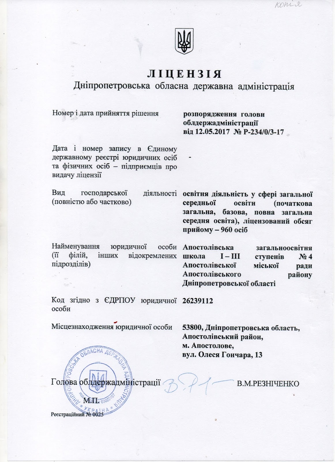 Апостолівський ліцей №4 Апостолівської міської ради Криво...